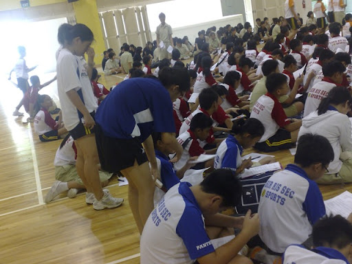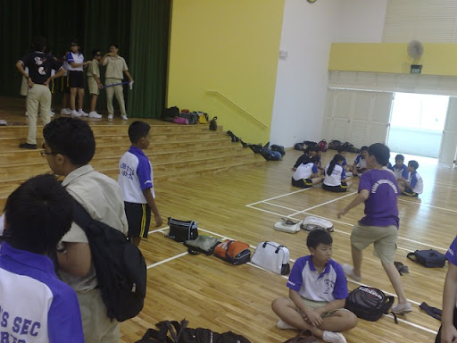 got to sch.. on 845.. yaays! then we placed our bags in Mr Ow's office agn and went to join the sec1 for their recess! hahahas talked to a grp of sec1s.. during their recess.. hahas.. they got to know me more and some of them even asked me of my family background.. then we went up to the hall to start playing the treasure hunt cum confidence challenge.. leopard 2 the grp i was wif for tdy was super funny.. esp daniel, tori and tsi ming.. joseph oso la.. hahahas..