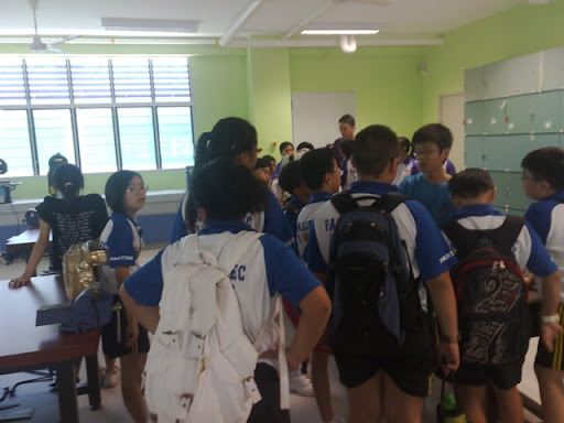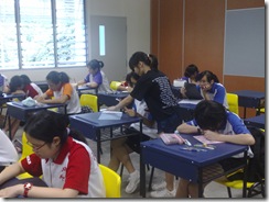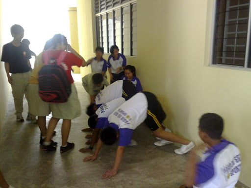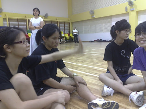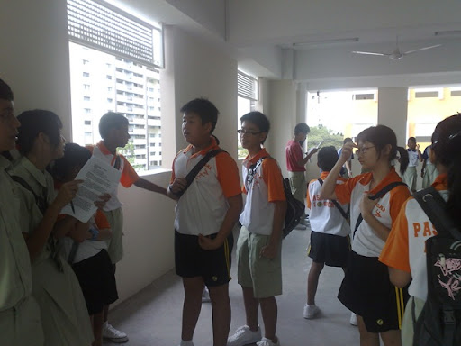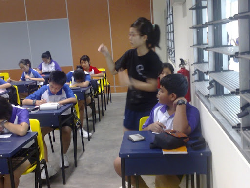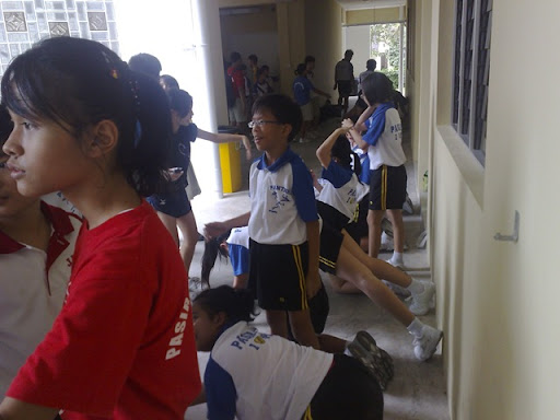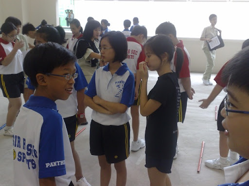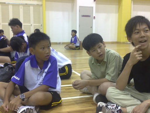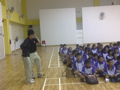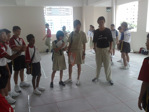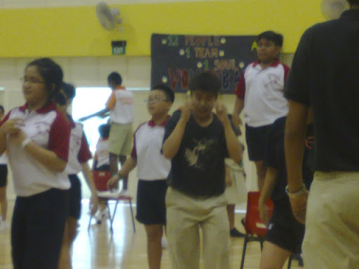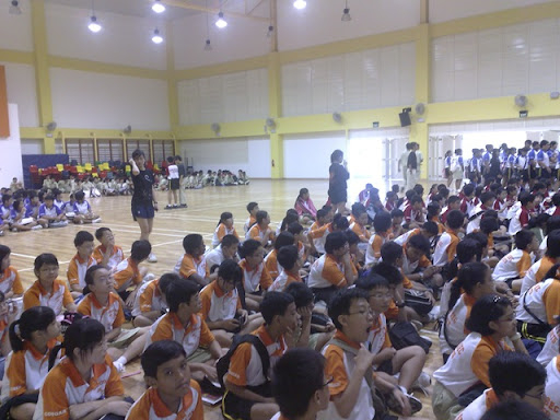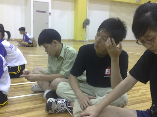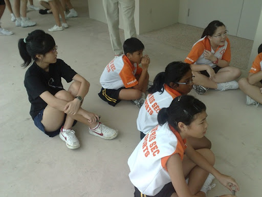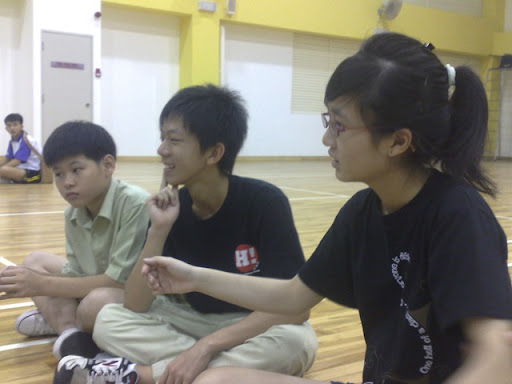 after the class interactions.. they went back to the hall to hve the team building games.. super funny sia.. didn't really joined any particular grp.. just went around to check up on the oth grps.. and now and then i will be joining their games.. quite fun actually.. then it came to the singing of the sch song.. lol.. i was like making it as funny as possible.. becoz i noe the sec1s will be like super bored to tears.. lol..